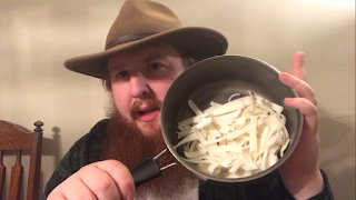 After a few hours, the raw hide toy was soft enough to be unrolled into a flat piece which is much easier to work with. At this point I laid it out on a cutting board and cut it into small strips keeping in mind that they all need to fit into a pot.